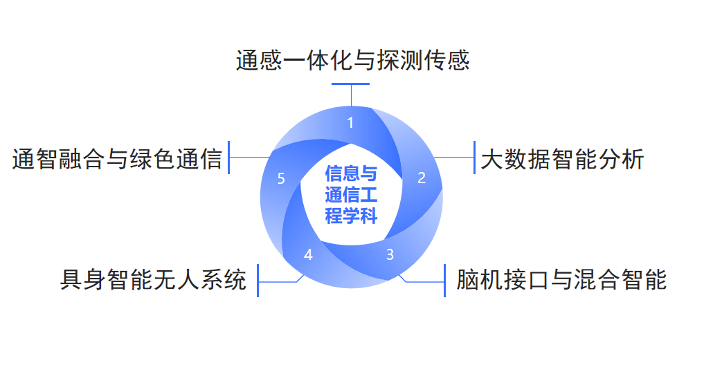 根据国家战略与行业发展需求,学院瞄准新一代电子信息技术创新发展与应用前景,以基础前沿创新与国家战略需求为双驱动,立足“智能探测/传感 + 智能信息/信号处理 + 智能通信”主线,开展学科专业优化与方向布局,围绕信通、能源、生医、国防等领域行业,重点布局了通感一体化与探测传感、大数据智能分析、脑机接口与混合智能、具身智能无人系统、通智融合与绿色通信等5个特色领域方向,现拥有省级科研平台3个,通过人才引育组建交叉创新团队,推动电子信息、通信与智能技术交叉融合发展与创新应用,构建新的特色优势学科与平台,争取新增电子信息相关学科博士点,期望2030年左右建成国内一流、智能特色鲜明、学科门类合理的电子信息工程学院。