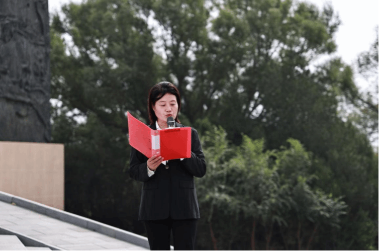 默哀毕,党员代表迈着庄重的步伐走向烈士纪念碑,向先烈敬献花篮。院党委书记朱晋华同志缓步上前,仔细整理花篮缎带,红色的缎带在纪念碑前飘扬,象征着革命精神的代代传承。