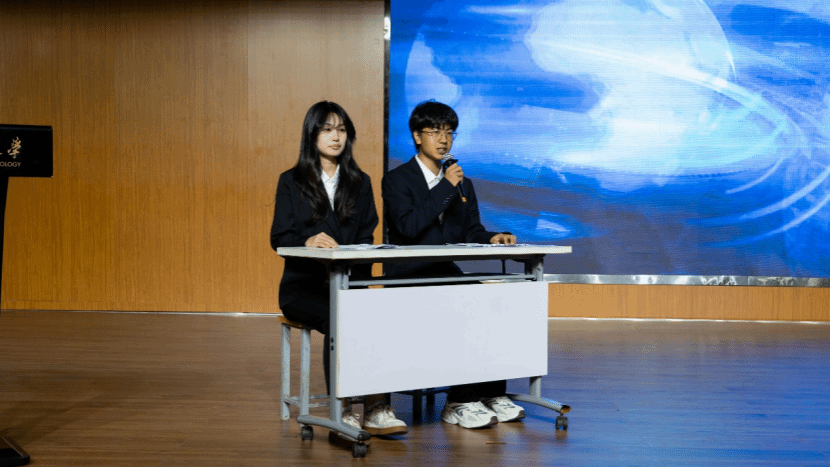 展演最后,科技创新团队代表上台分享成果。成员围绕暑期科技竞赛、技术研发经历,讲述攻克设备信号传输、参与省级竞赛等攻坚过程,展现电子信息学子敢闯敢试、追求卓越的精神,也让大家看到专业知识在实践中的生动应用,为展演画上圆满句号。
