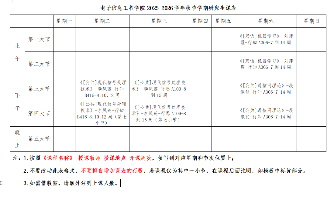 电子信息工程学院2025-2026学年秋季学期研究生课表